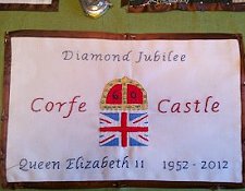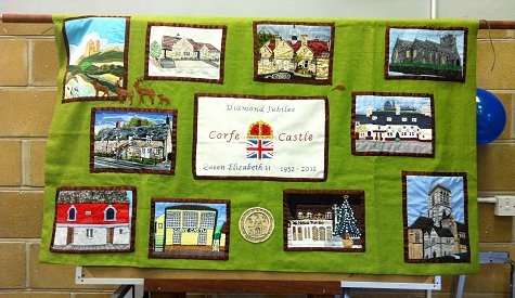 The wall hanging was on display during the celebrations at the Celebration Church Service and the Corfe Castle Village Tea Party.