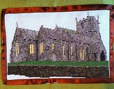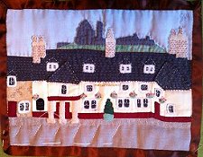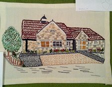 A group of ladies in the village are busy finishing their commemorative wall hanging showing some of the most distinctive and important elements that make up our village. Once completed the wall hanging was hung in our doctors surgery for everyone to enjoy.